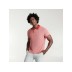Рубашка поло с коротким рукавом. Манжеты и воротник из однотонногориба 1х1 с контрастными полосками. Планка на 3 пуговицы. Низ сбоковыми разрезами, отделанными тесьмой. Спинка немного длиннееполочки. Полотно с меланжевым эффектом.