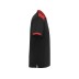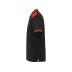 Рубашка-поло с коротким рукавом в двухцветной комбинации. Воротники половина рукава отделана рибом 1x1. Планка на 2 пуговицы.Усиленные закрытые швы по воротнику. Боковые разрезы внизу.Контрастные плечи и детали. Дополнительный контрастный карман.