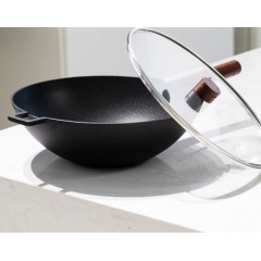 Деревянные ручки, расположенные на воке и крышке, выполнены из натурального бука, и не обжигают даже после продолжительной готовки.