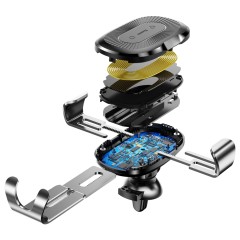 Корпус холдера выполнен из высококачественного ABS-пластика, устойчивого к перепаду температур и механическим повреждениям. В конструкции предусмотрено три фиксатора, которые при помощи пружинного механизма, надёжно удерживают устройство и гасят любые вибрации и удары, возникающие при поездках по плохой дороге. Контактная поверхность фиксаторов закрыта мягкими накладками, решающими проблему возможного появления потёртостей на телефоне. Под платформой Baseus Wireless Gravity, на которую устанавливается смартфон, спрятан шарнирный механизм, позволяющий поворачивать устройство на 180 градусов в двух плоскостях.